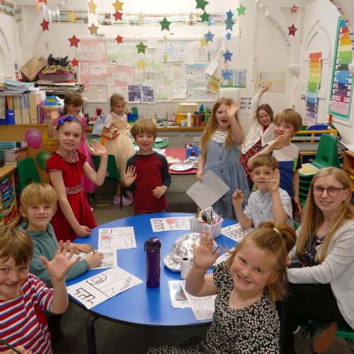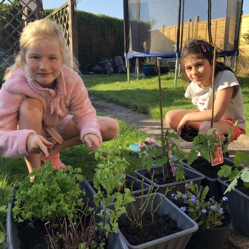 These learners have been working on Mrs Brown's Rainbow challenge, finding frogs in the pond and doing lots of growing in the garden!