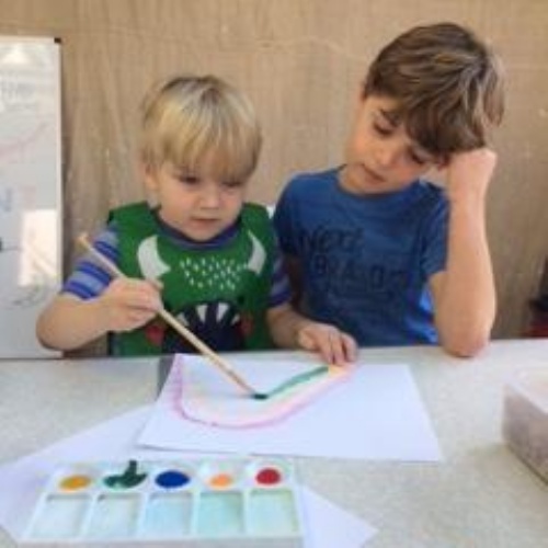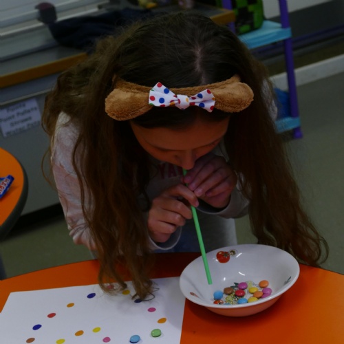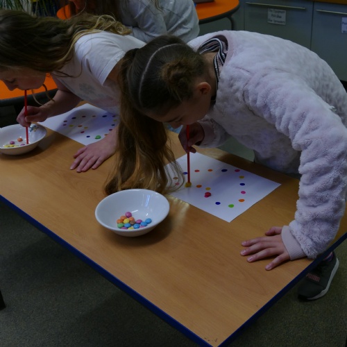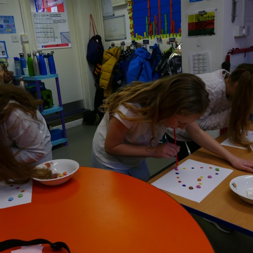 Two children have been making rainbows and doing Maths, among other activities!