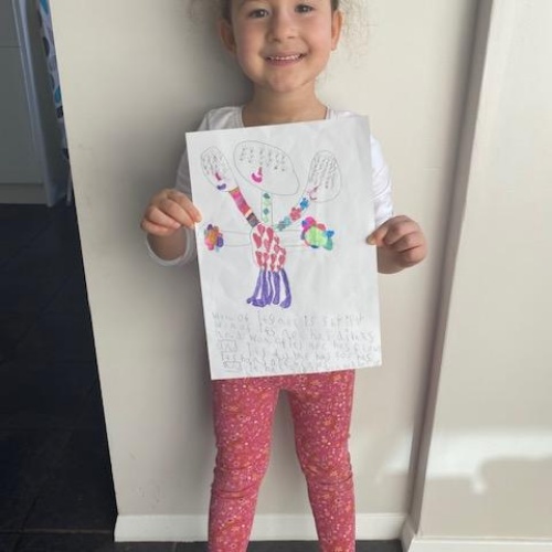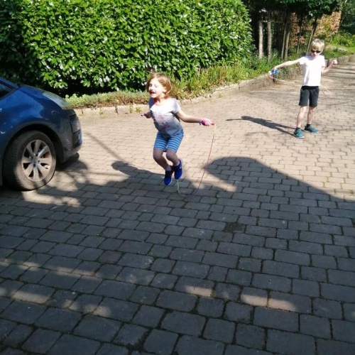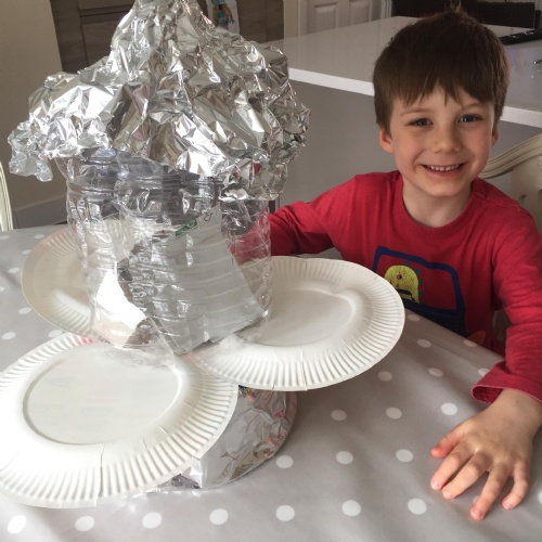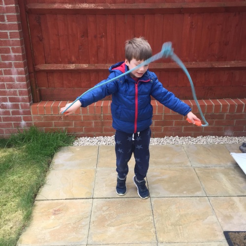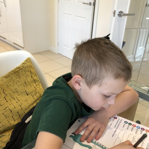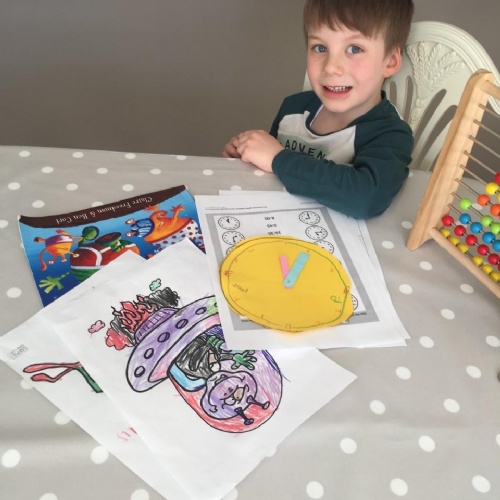 Week two Home learning for this learner included Reading, Maths, Writing, colouring and lots of skipping. They also pretended to be an astronaut; colouring upside down, and building a spaceship!