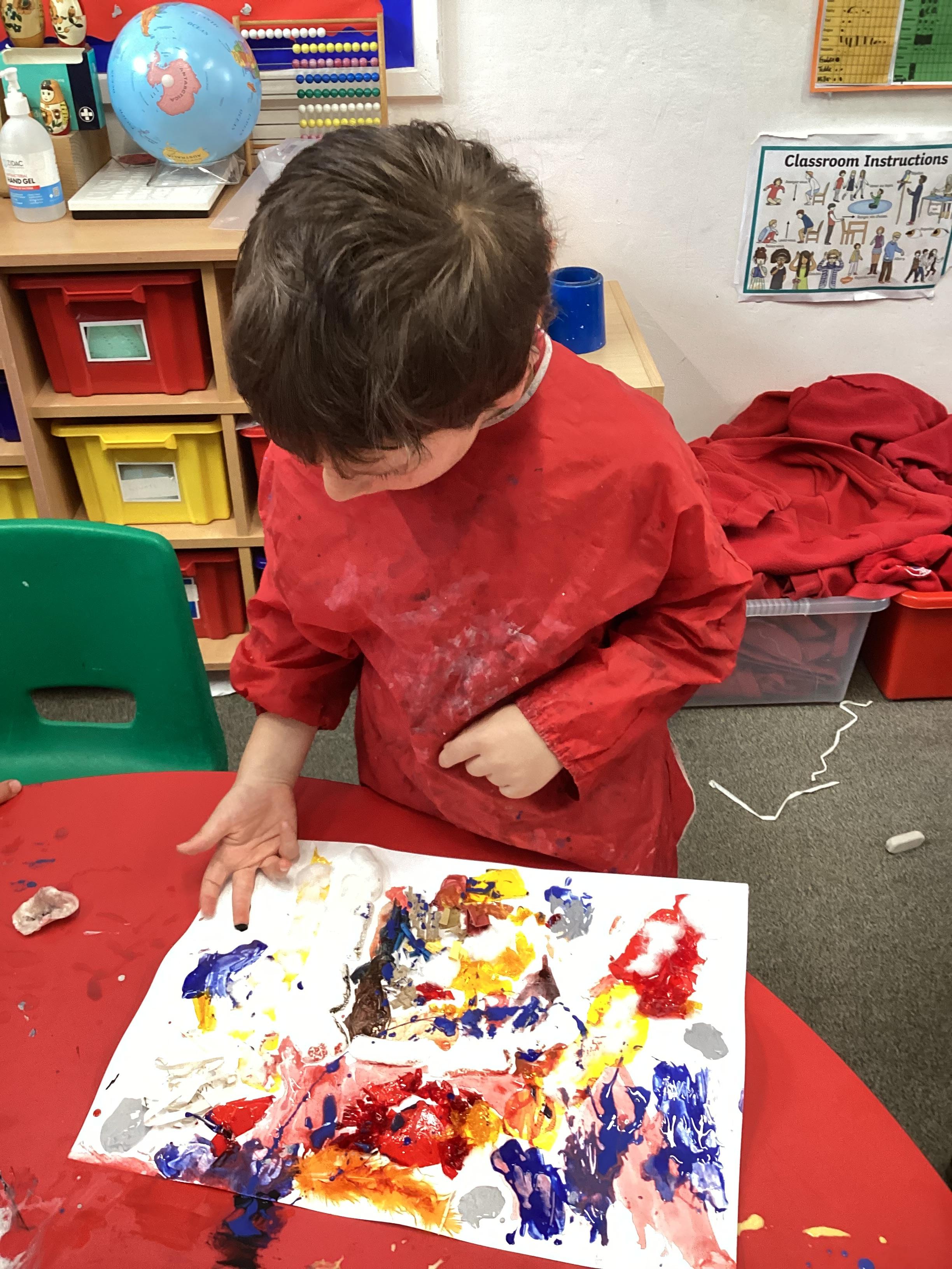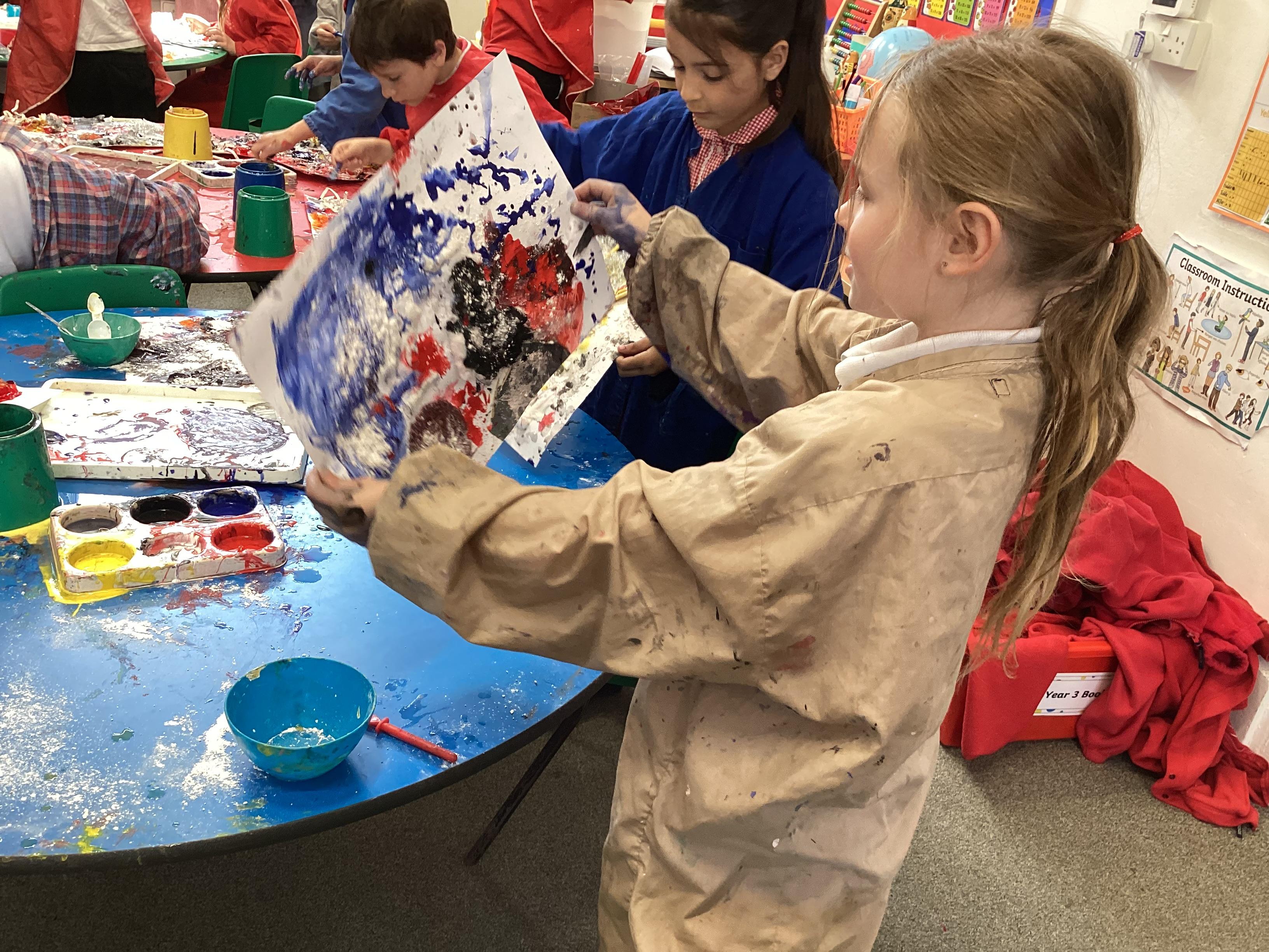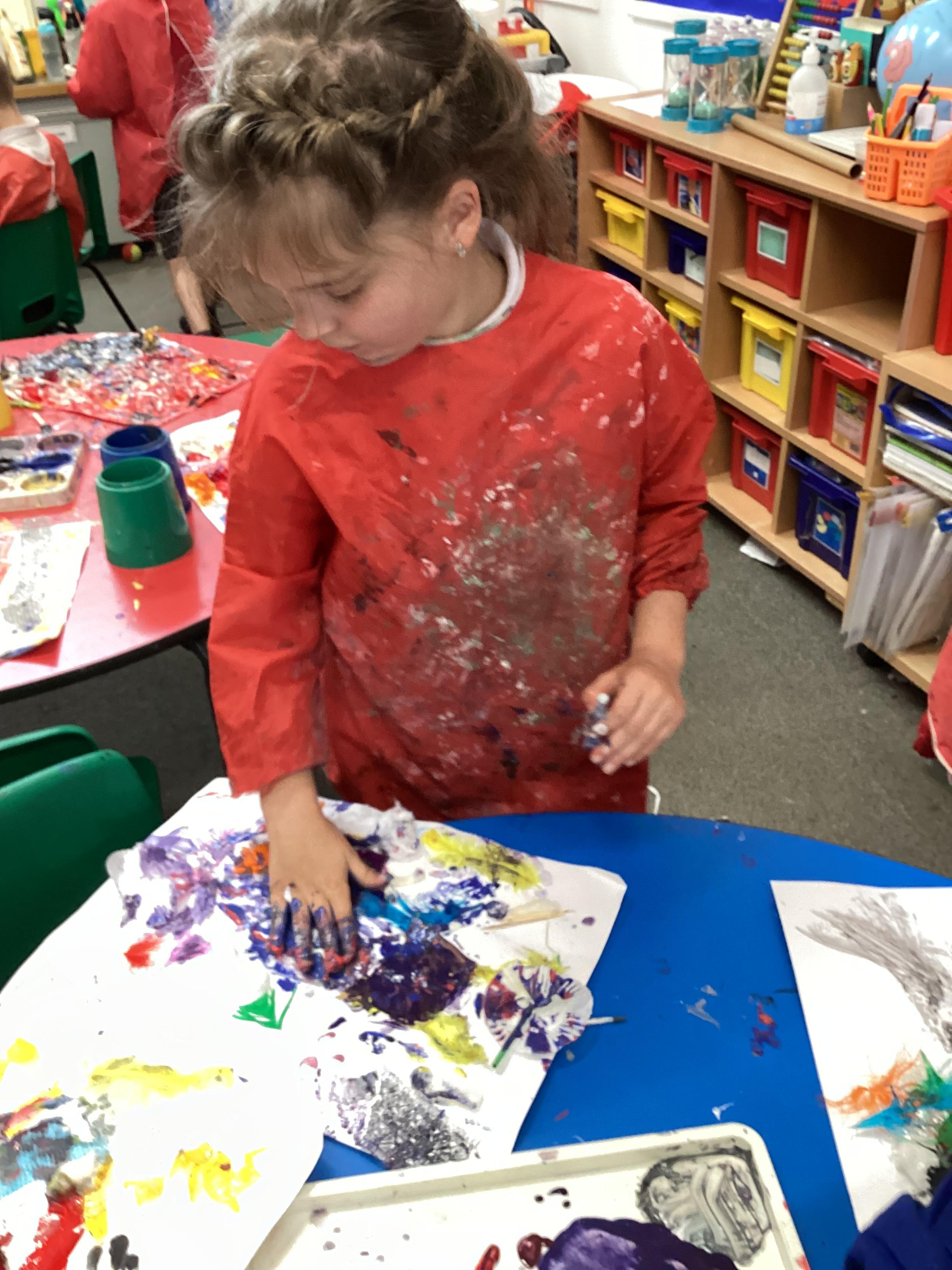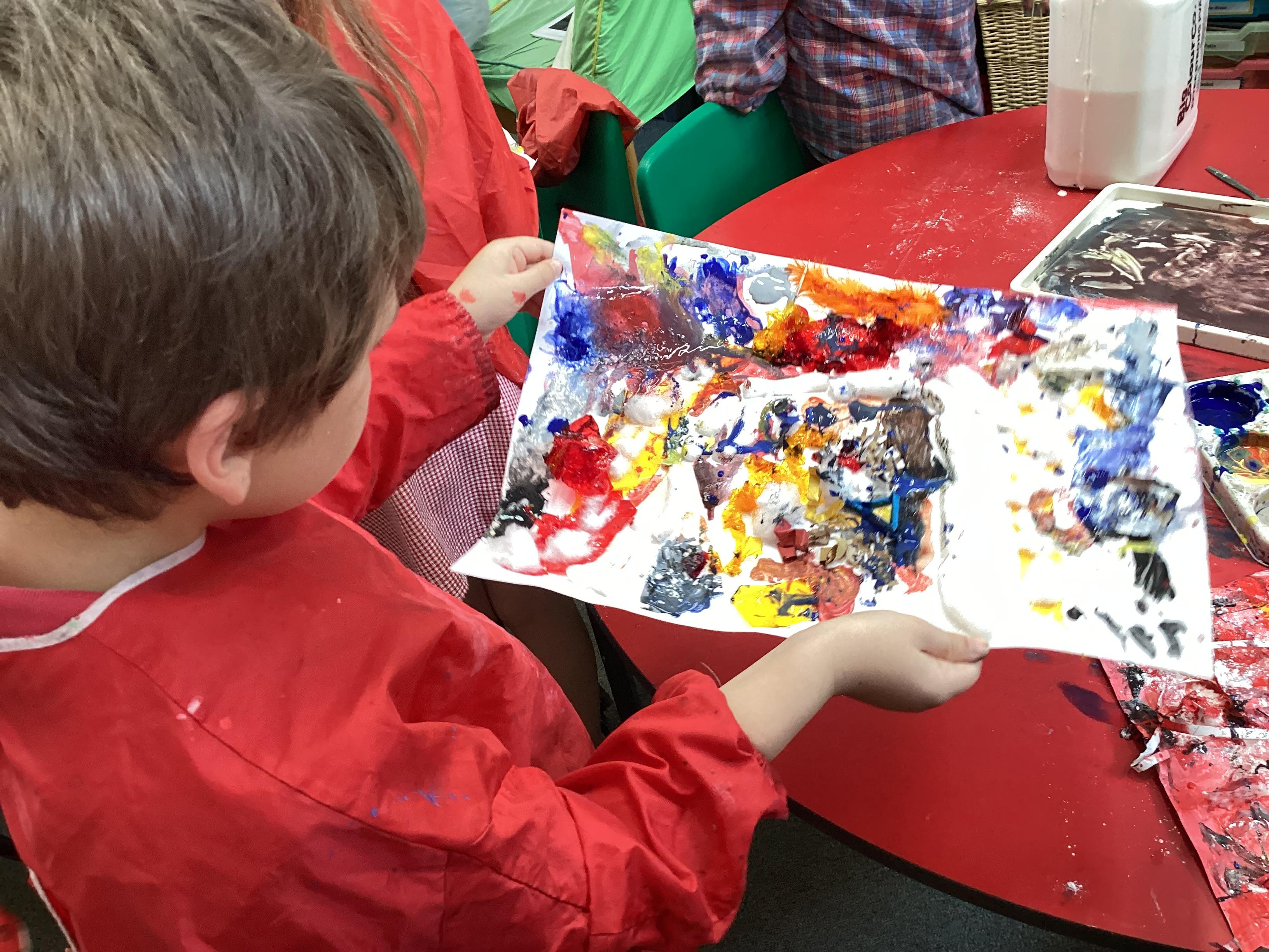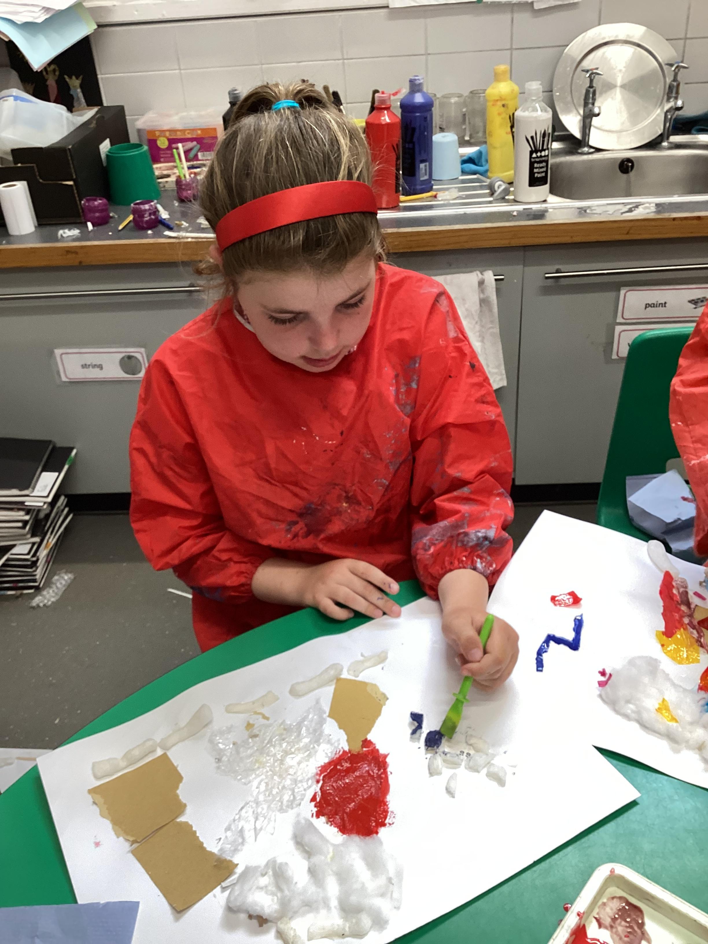 Our current topic is "Violent Volcanoes". We have been exploring the abstract textural art of acclaimed artist Frank Bowling, and, after experimenting with hot/cold colour mixing, and collage, we created our own abstract textured artwork representing "The idea and feeling of a Volcano". We had GREAT FUN exploring different ways of applying and thickening paint , trying to avoid using brushes, and even added dental plaster to our creations to add more texture. (Miss Burrough is still tidying the classroom!!!)