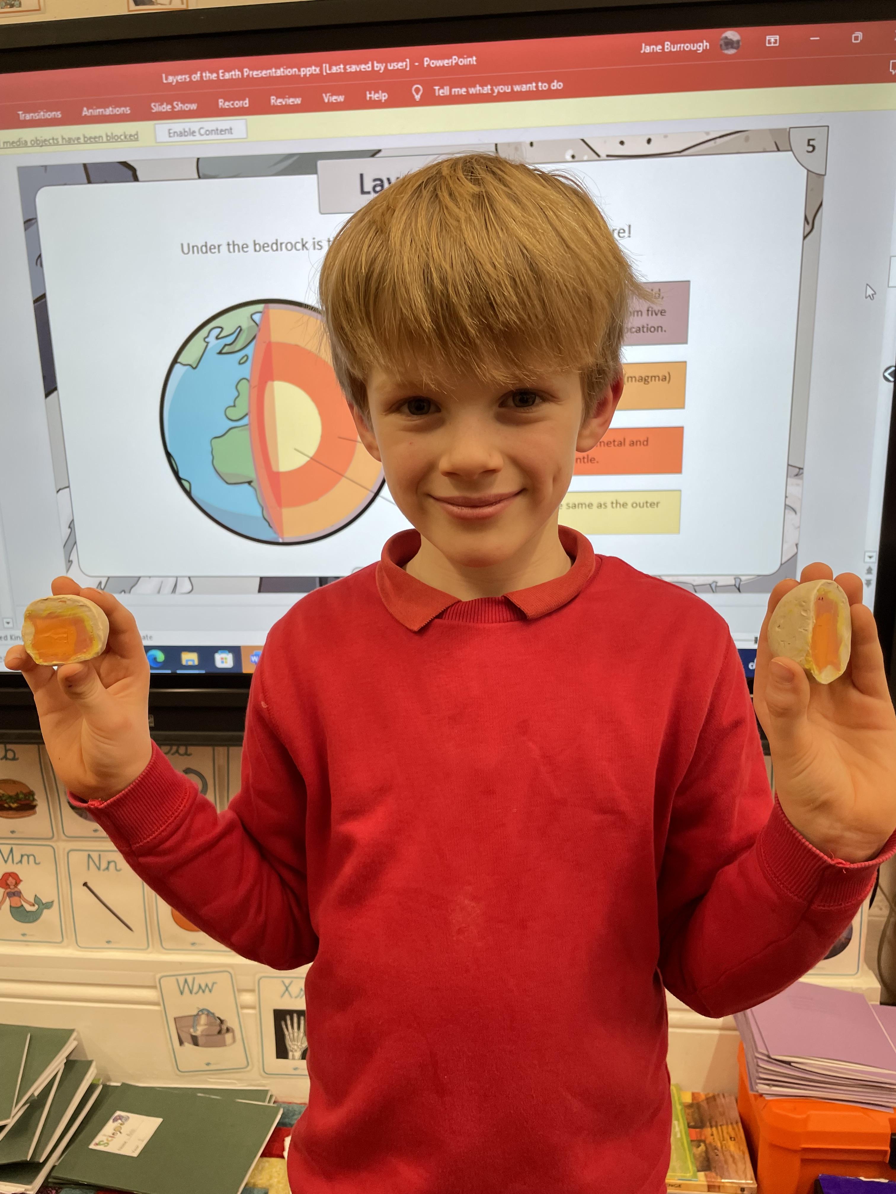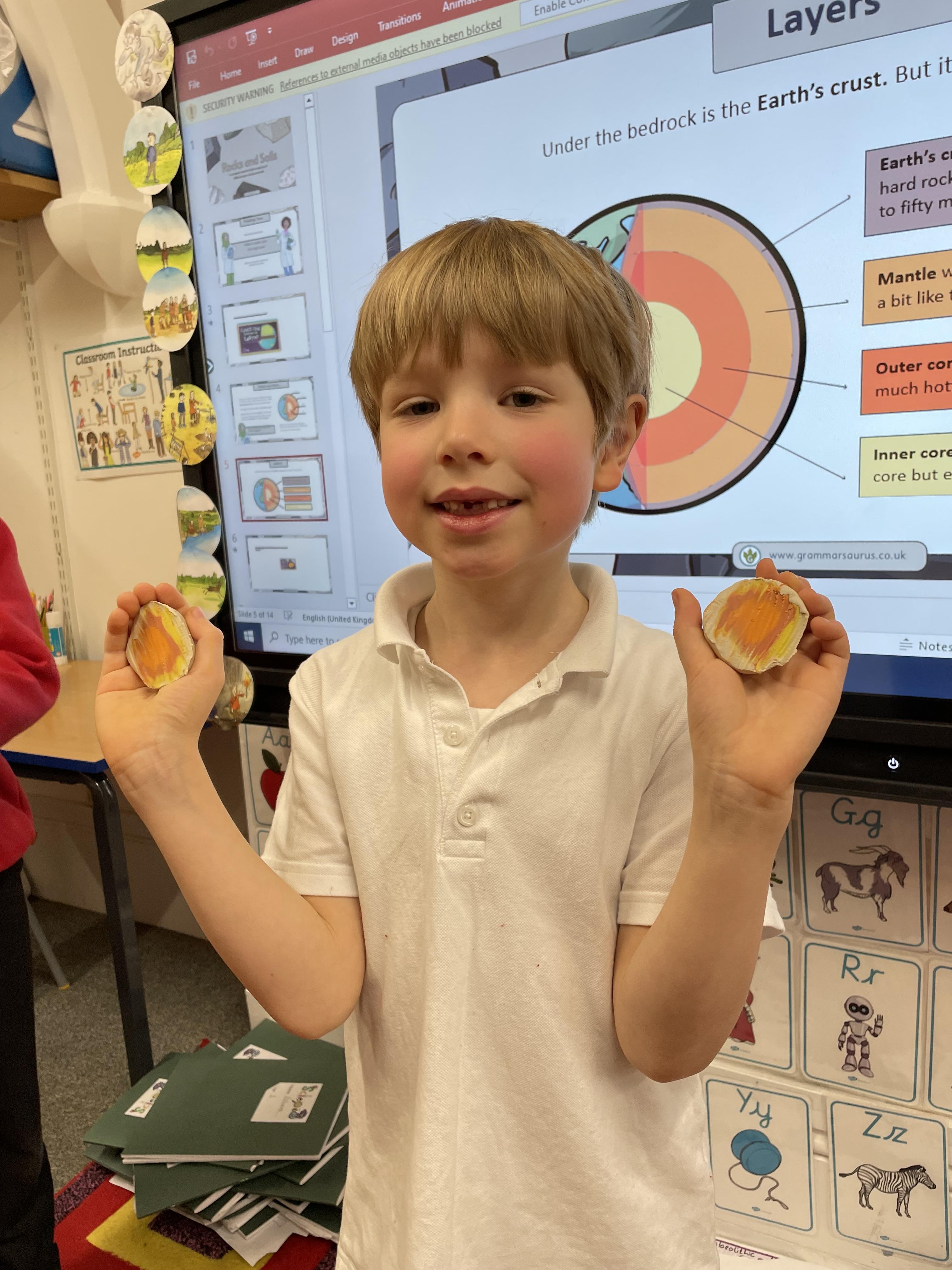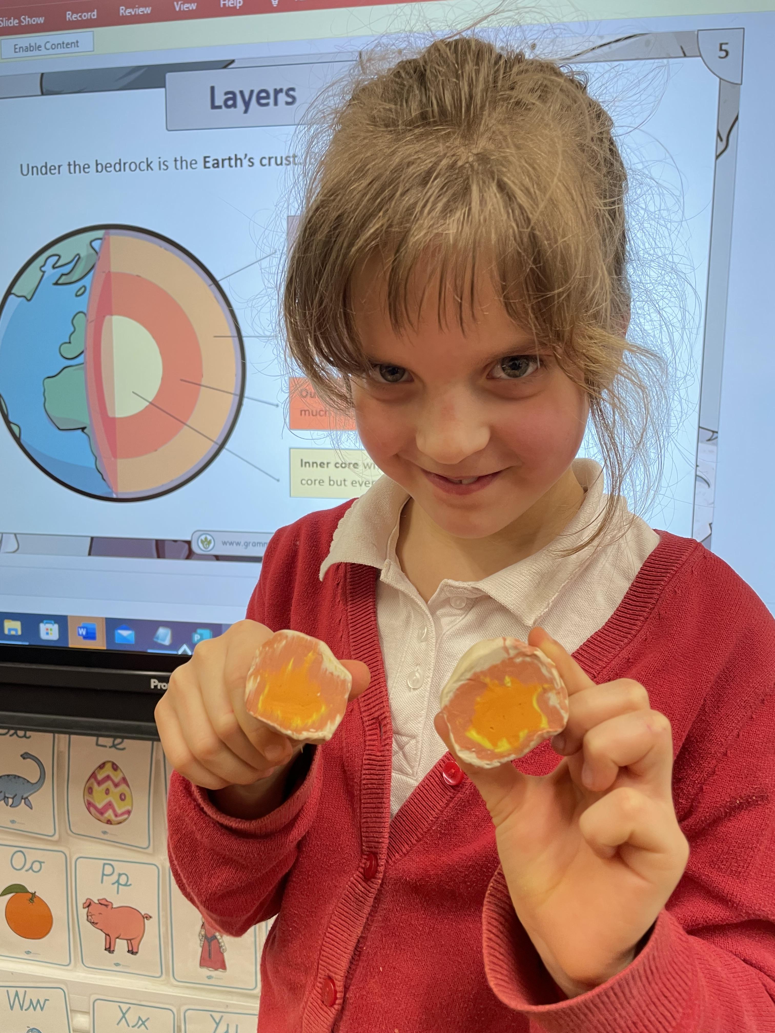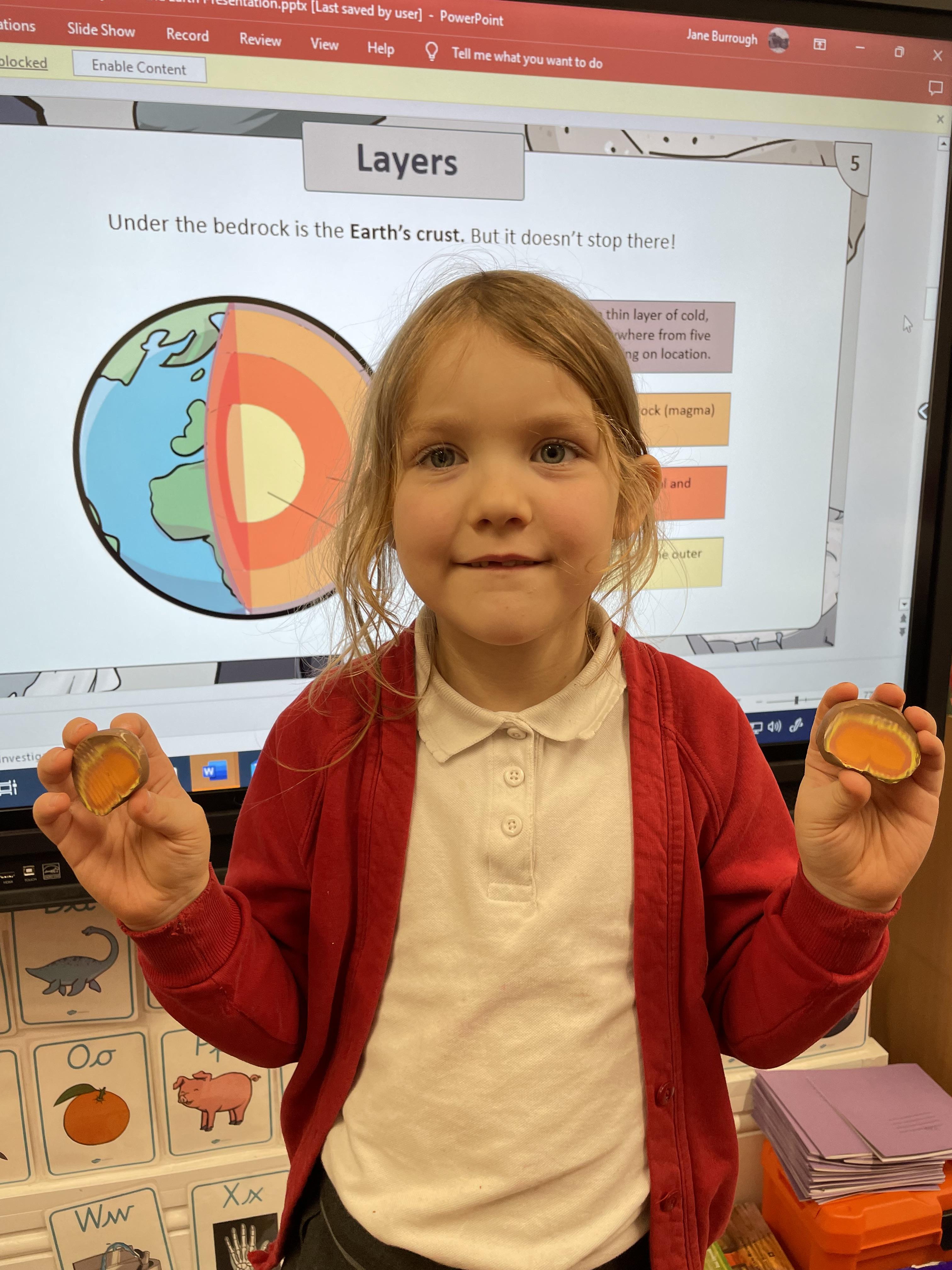 In Science we are studying Rocks, so we learnt about the layers inside our Earth by making a model of the inner core, outer core, mantle and crust.