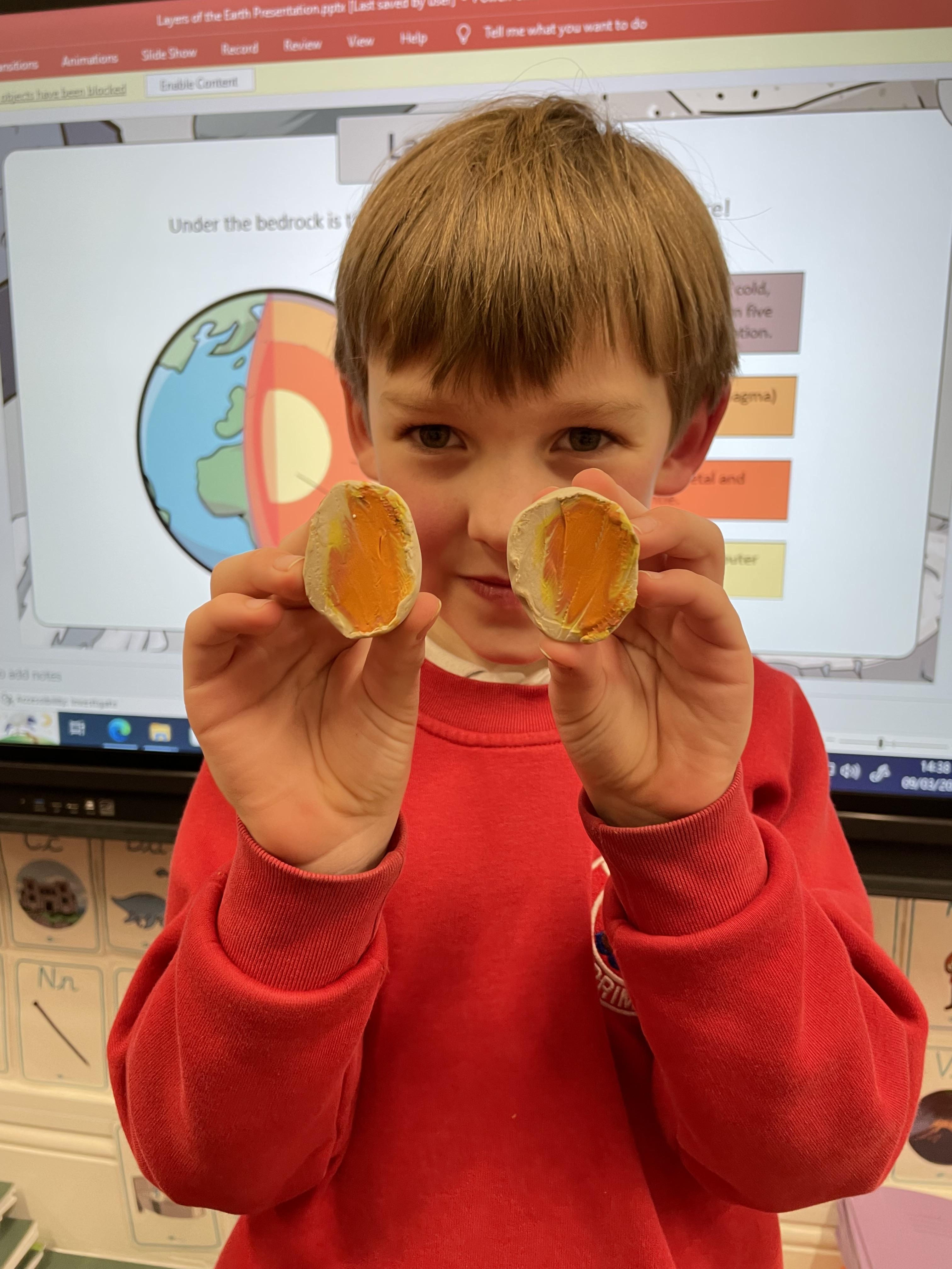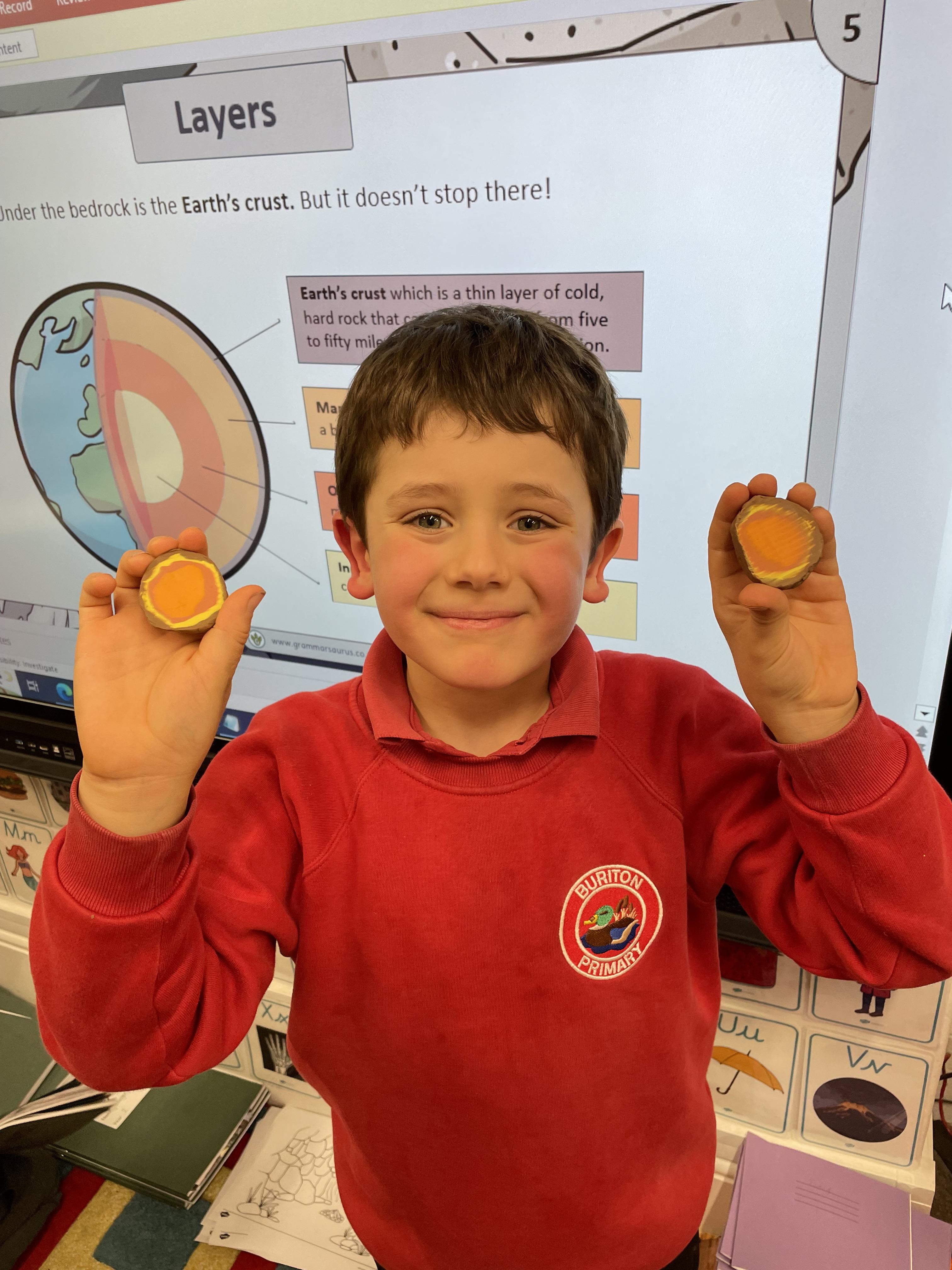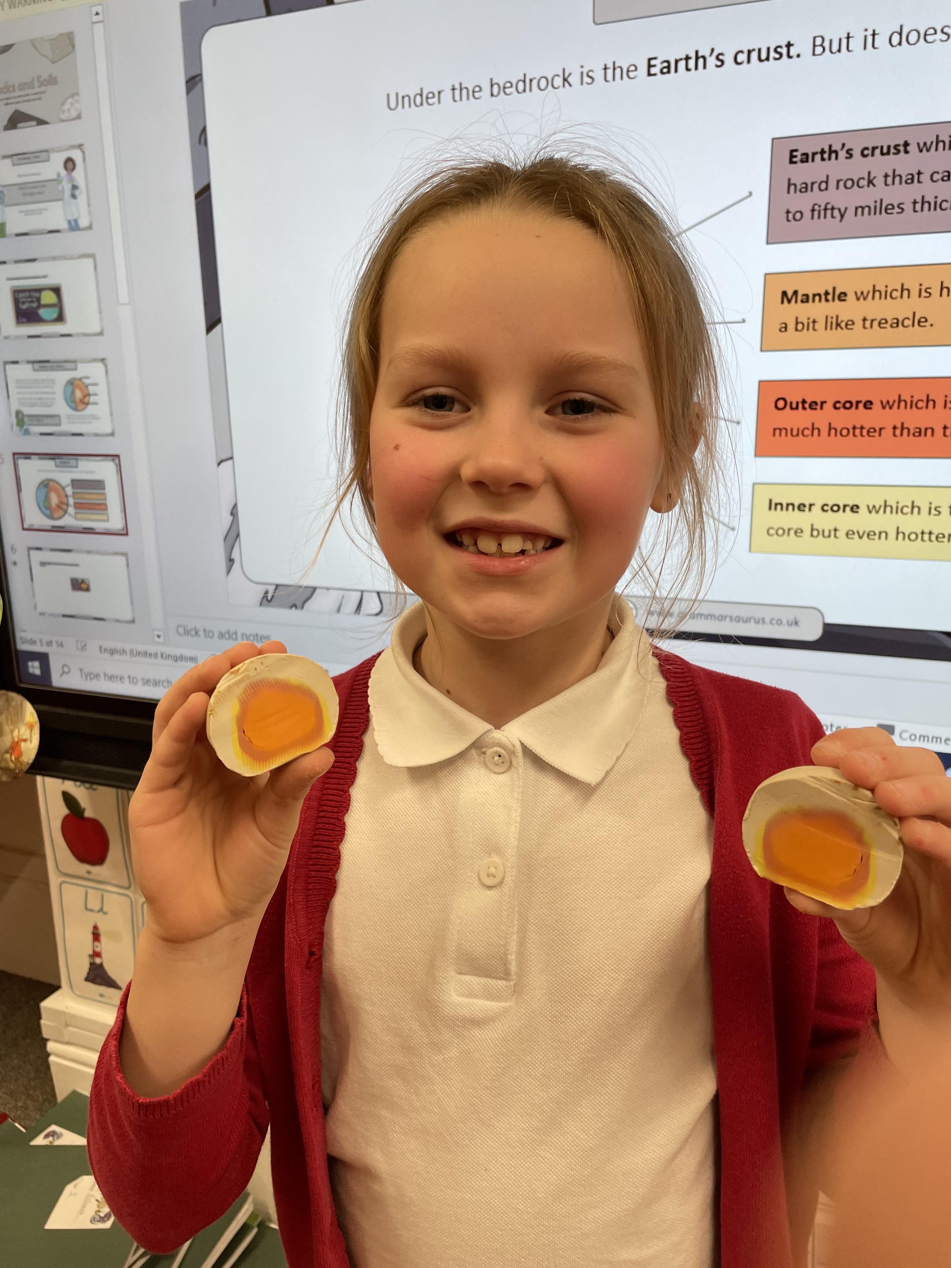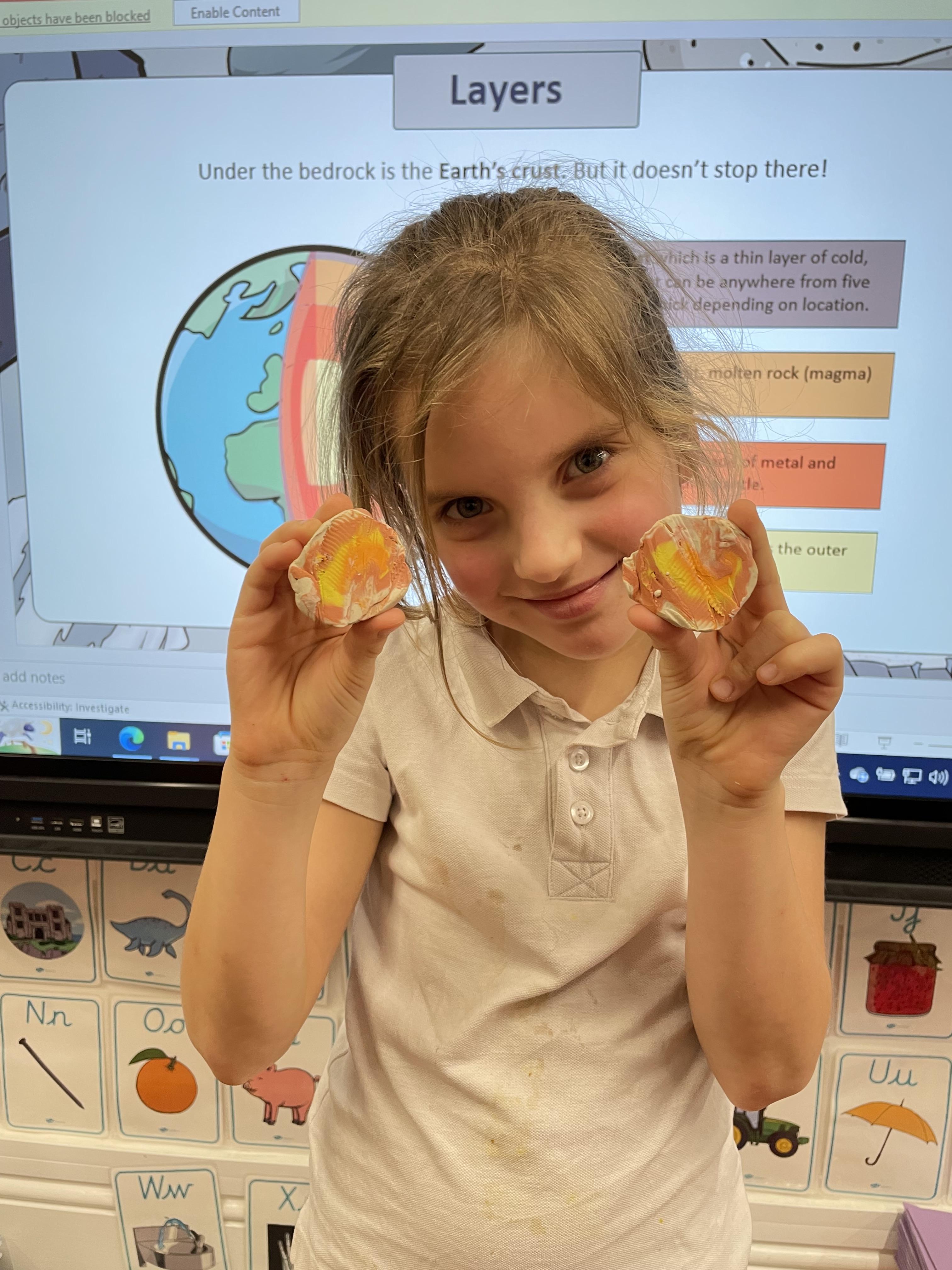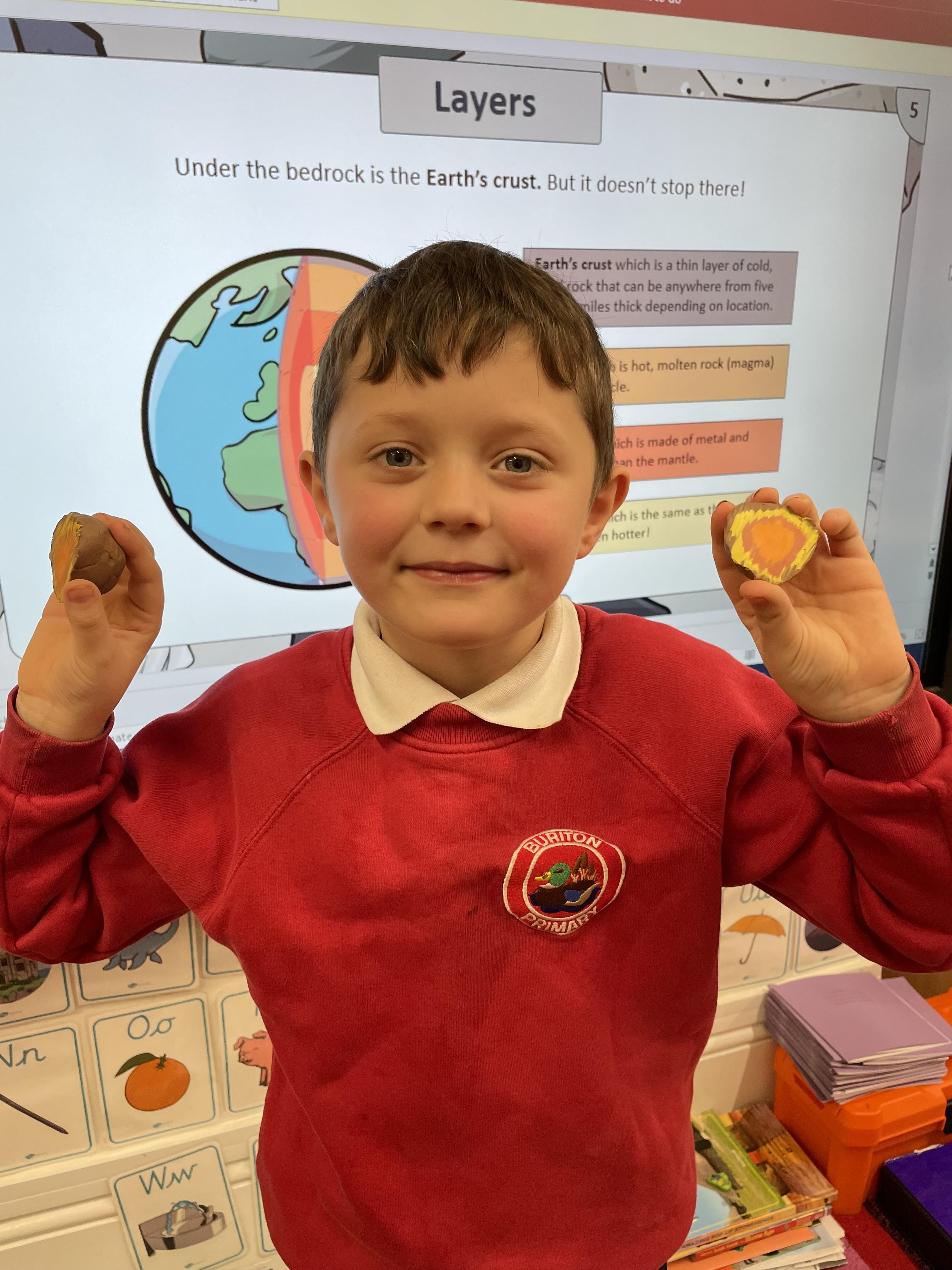 In Science we are studying Rocks, so we learnt about the layers inside our Earth by making a model of the inner core, outer core, mantle and crust.