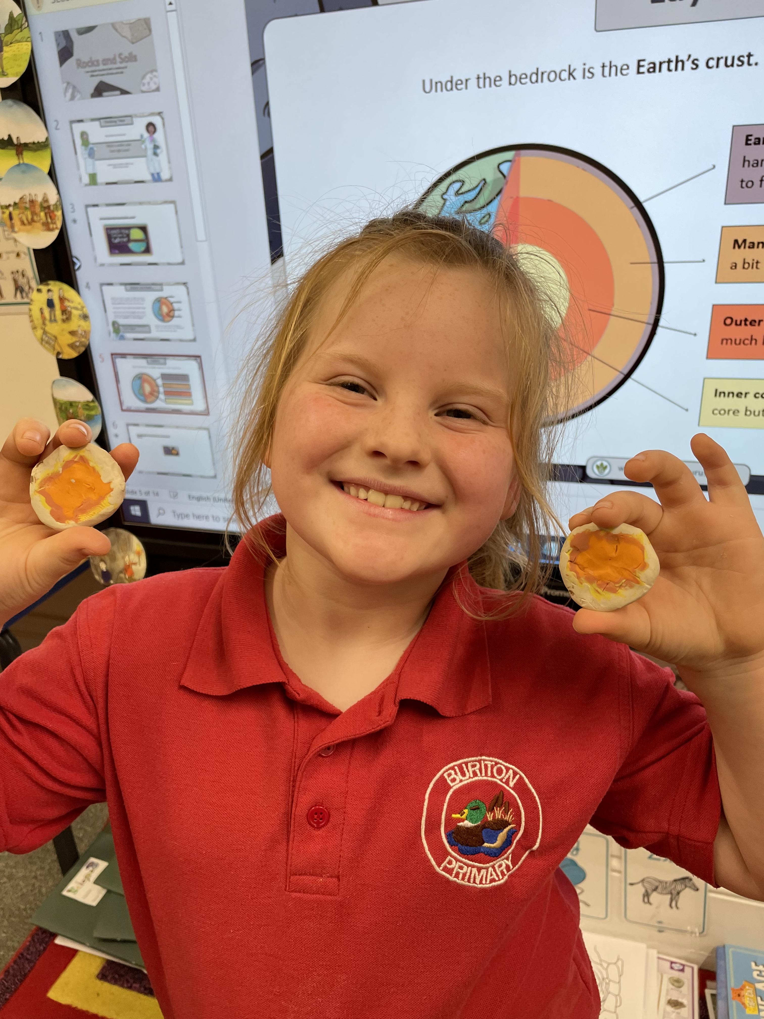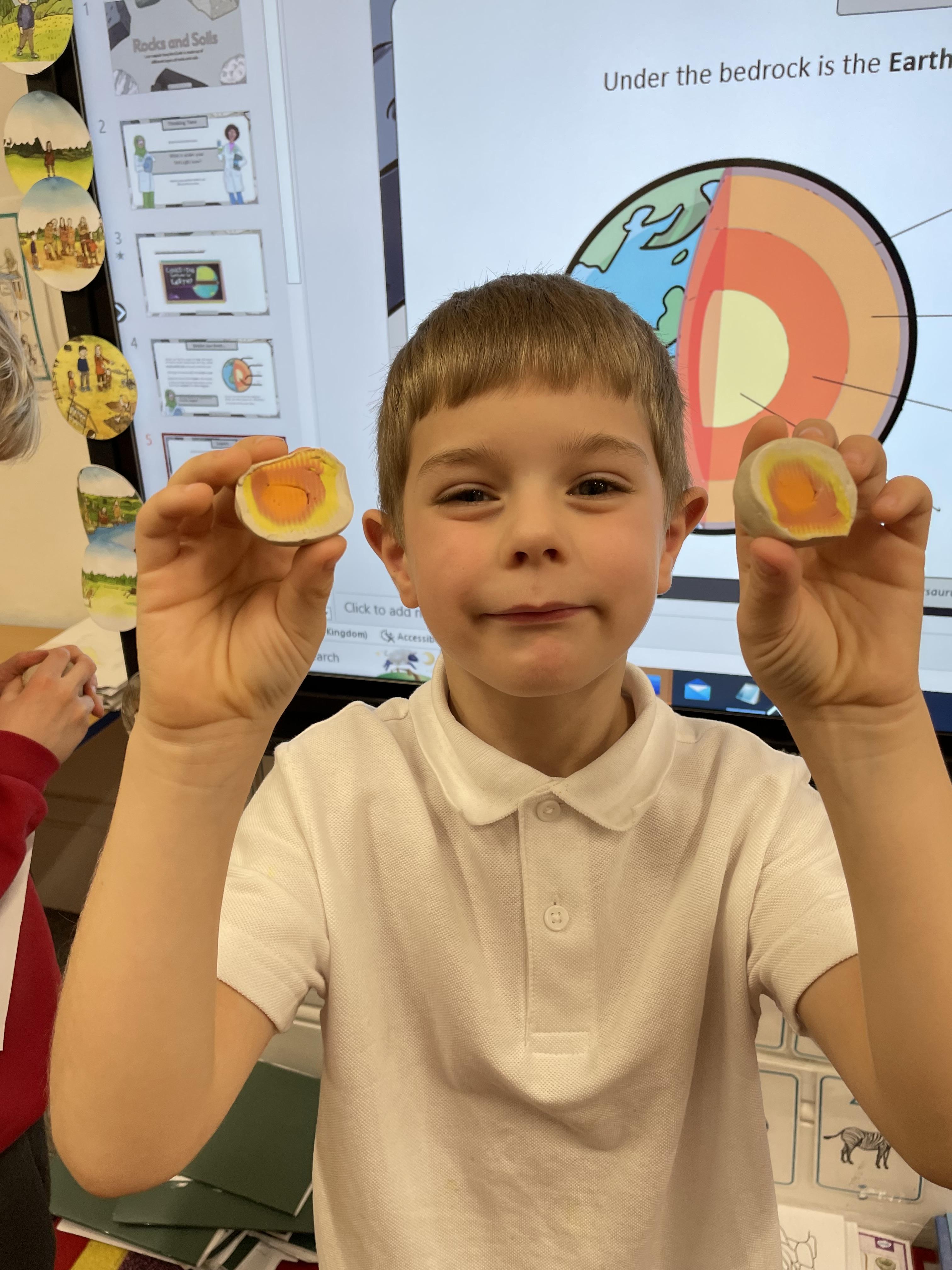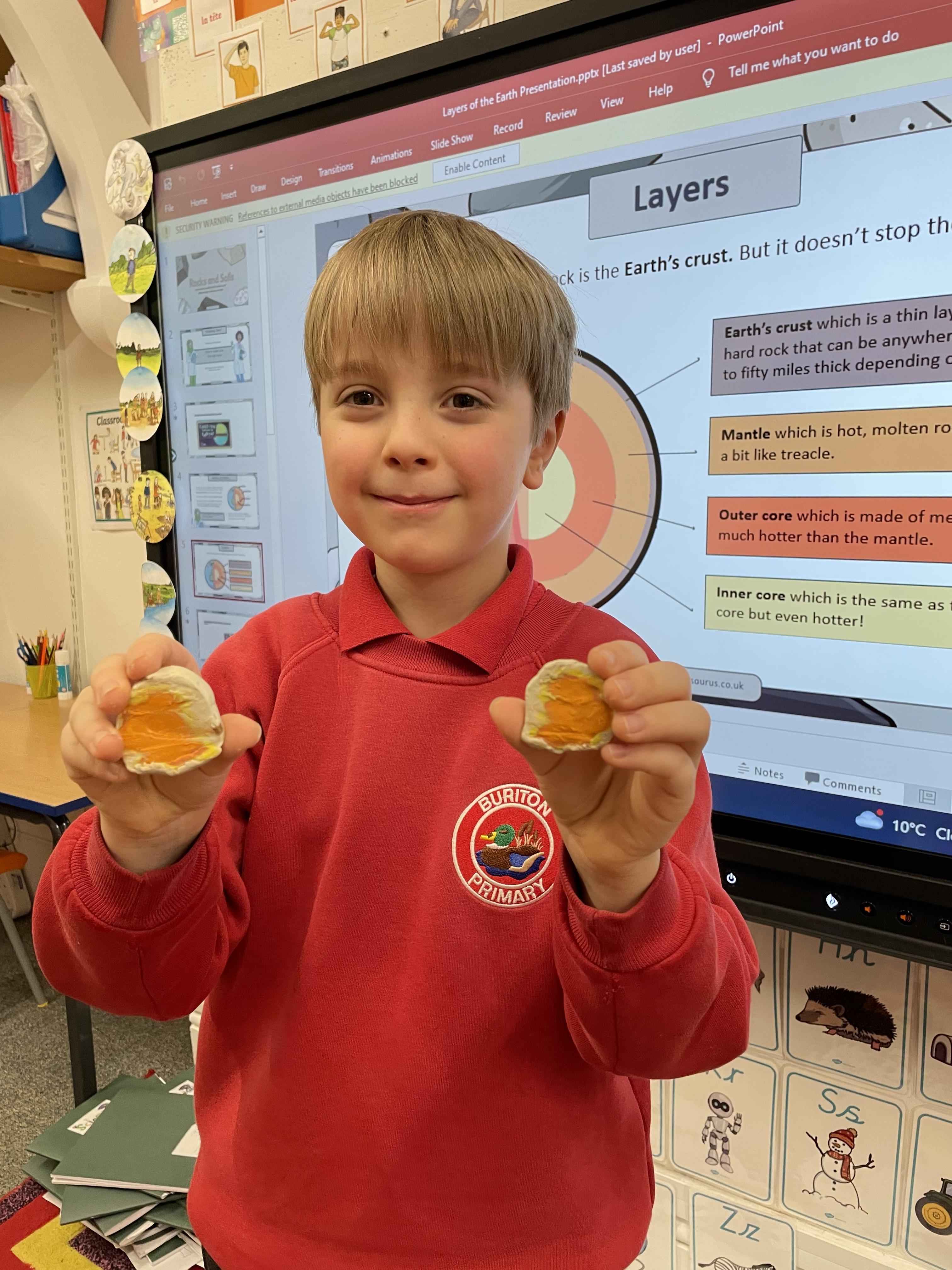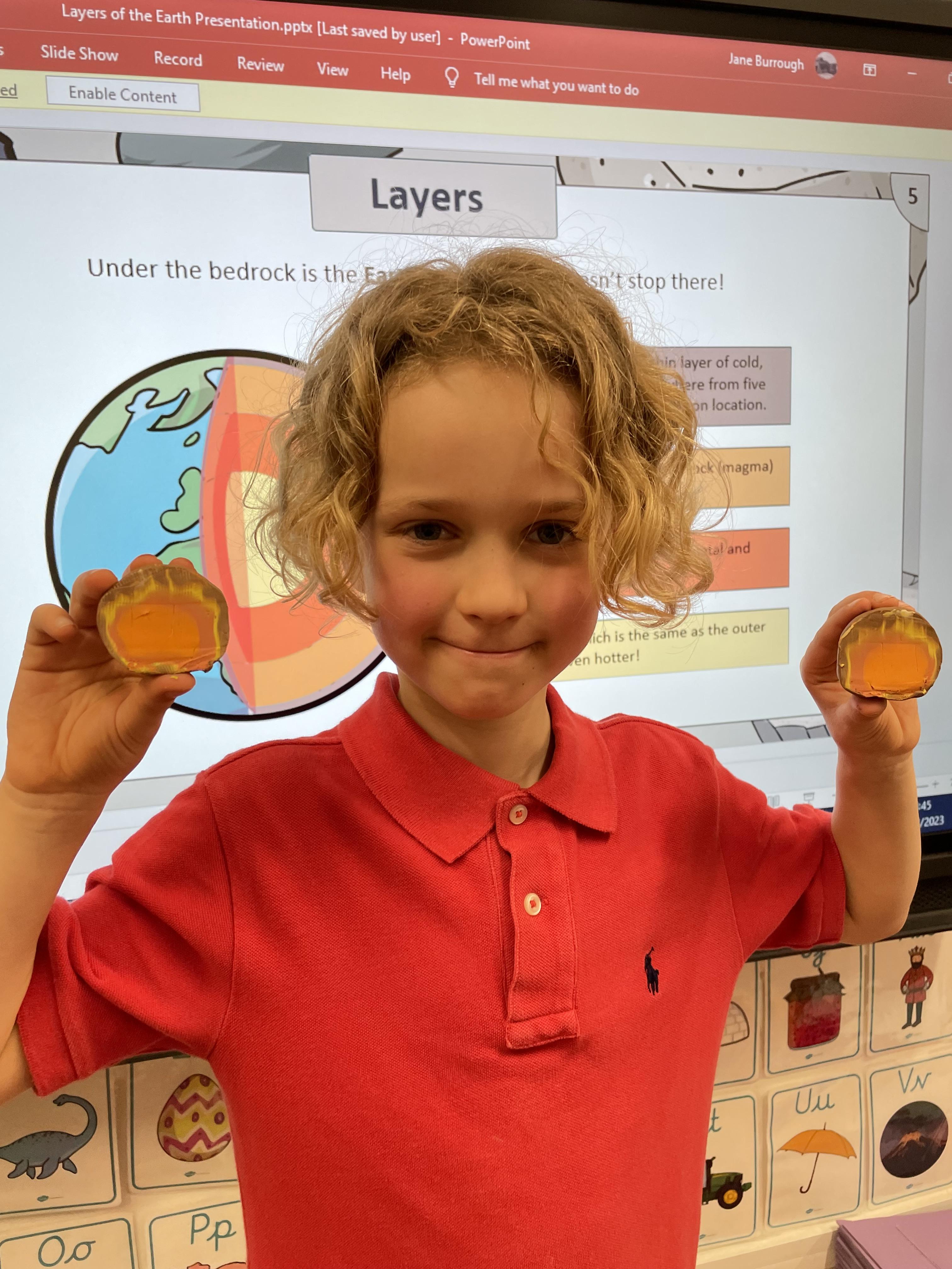 In Science we are studying Rocks, so we learnt about the layers inside our Earth by making a model of the inner core, outer core, mantle and crust.