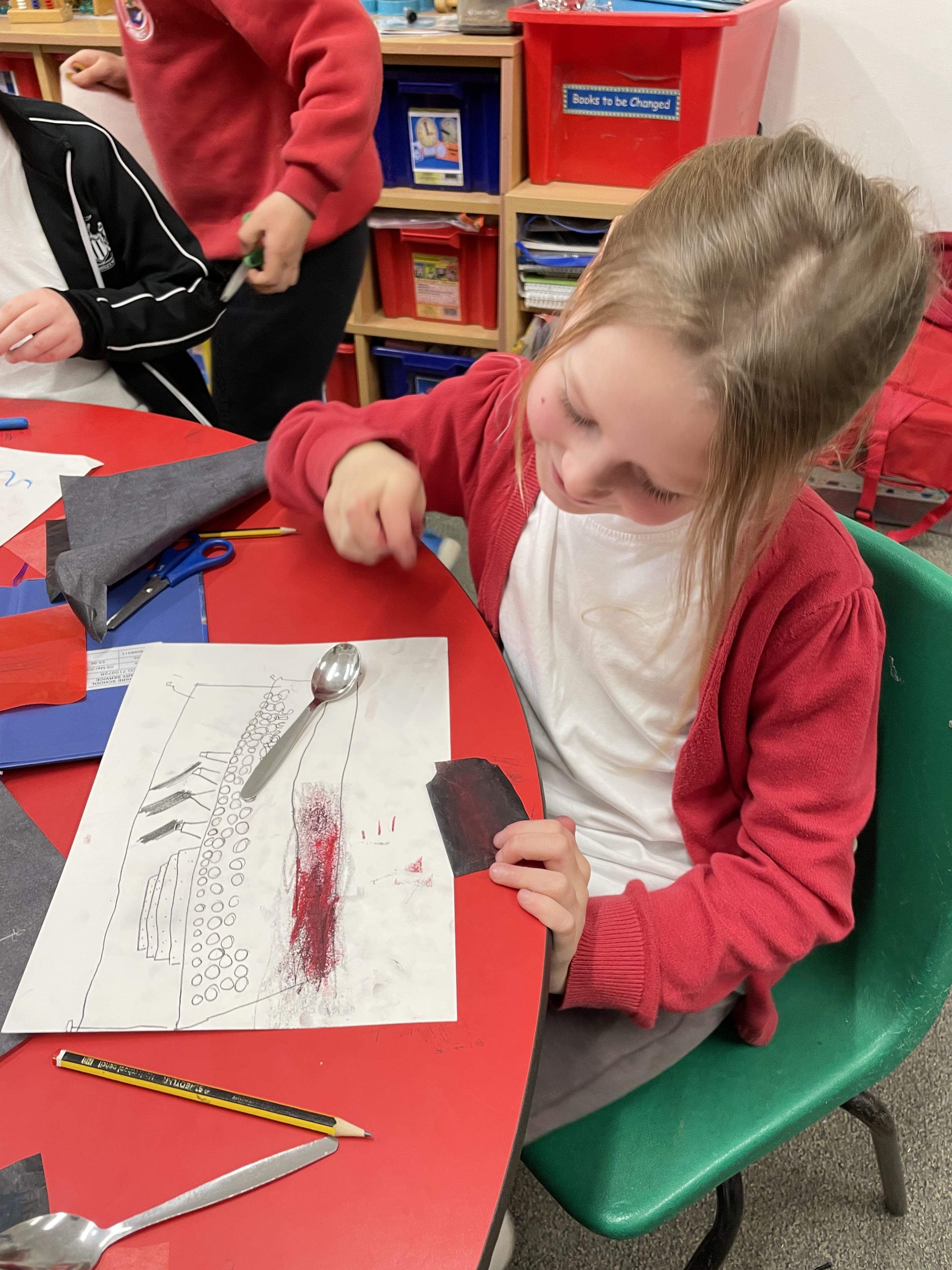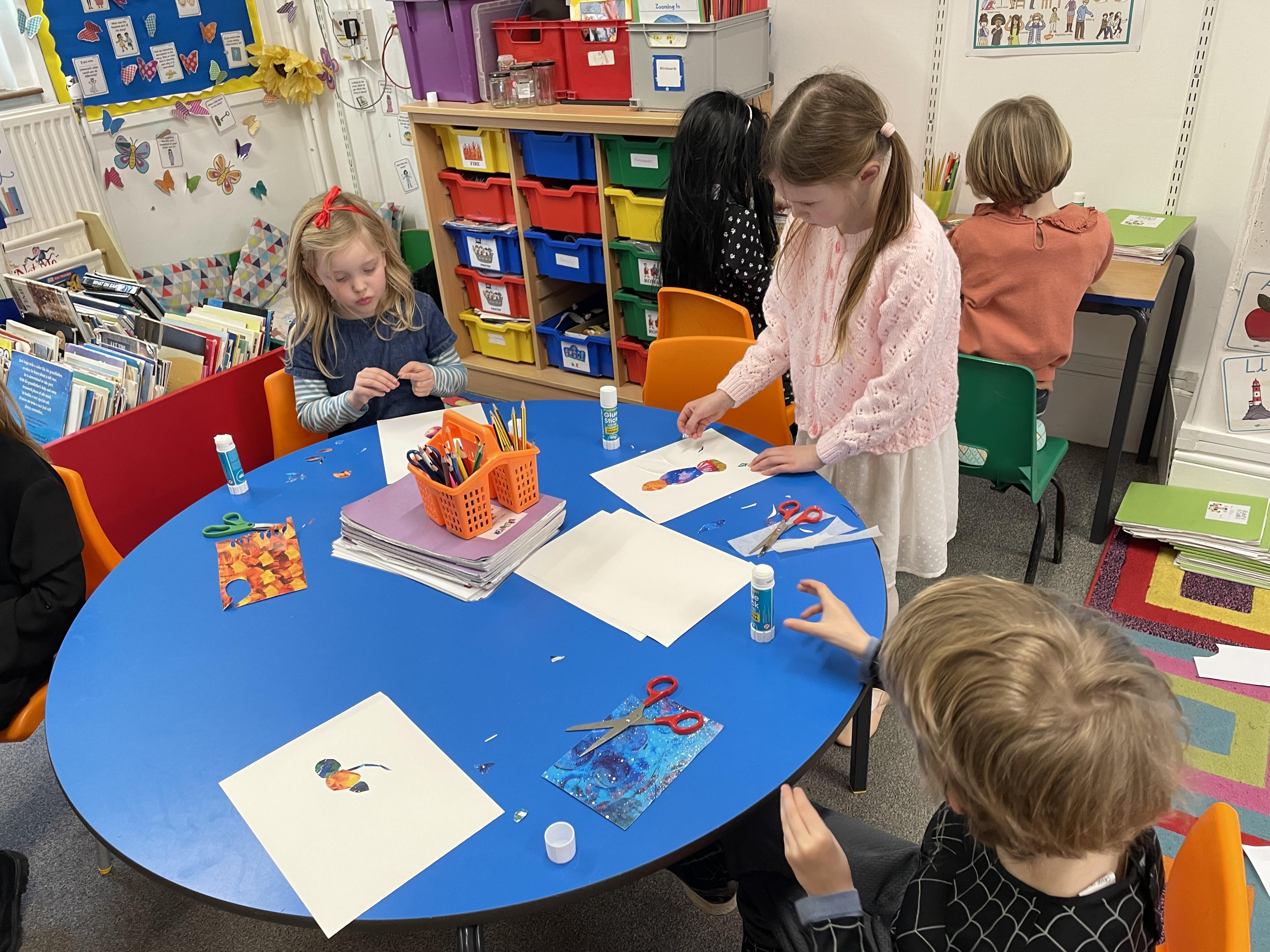 As part of our 'Book Week' work of "Du Iz Tak?", we made insect art using only scissors.