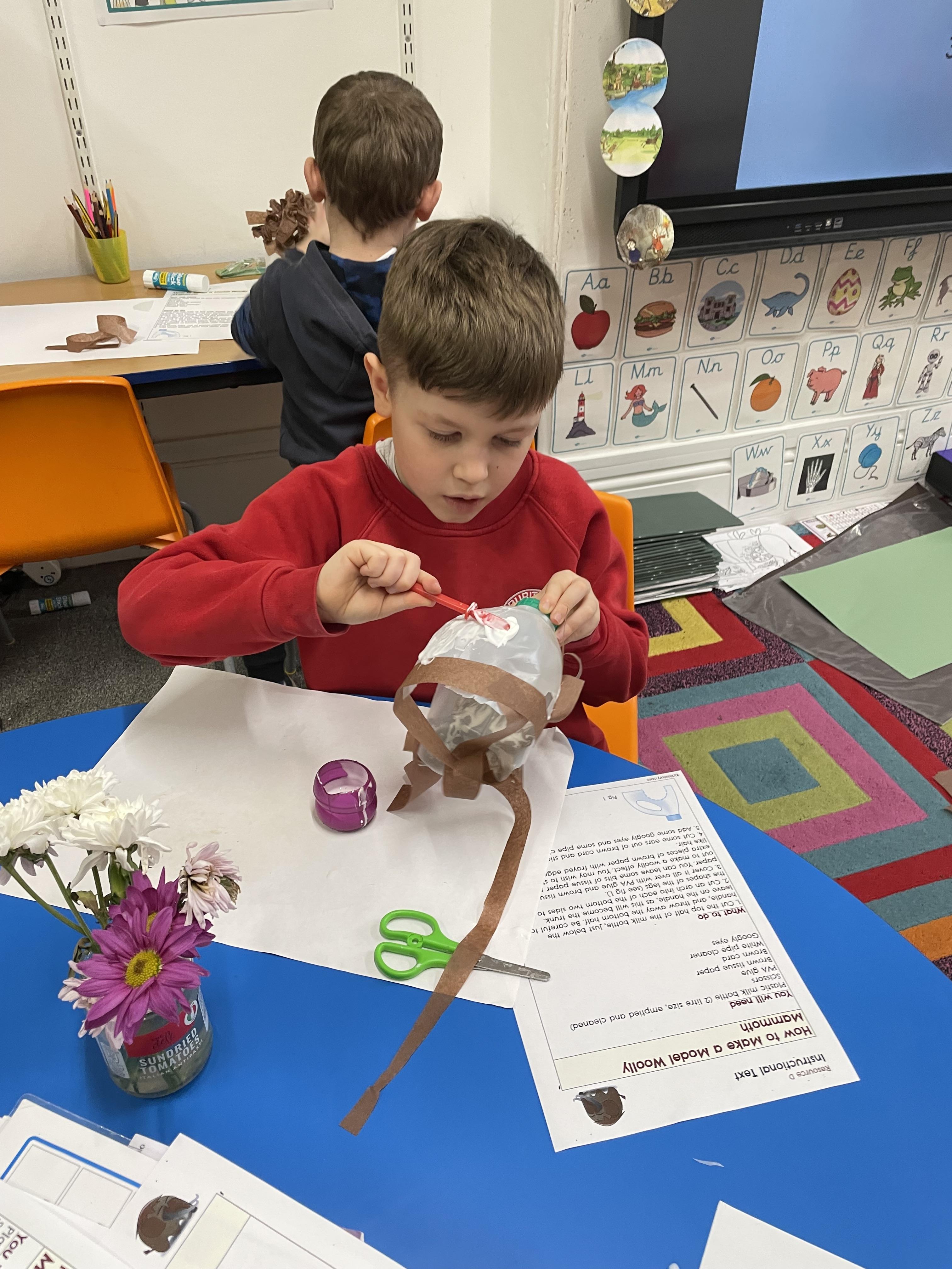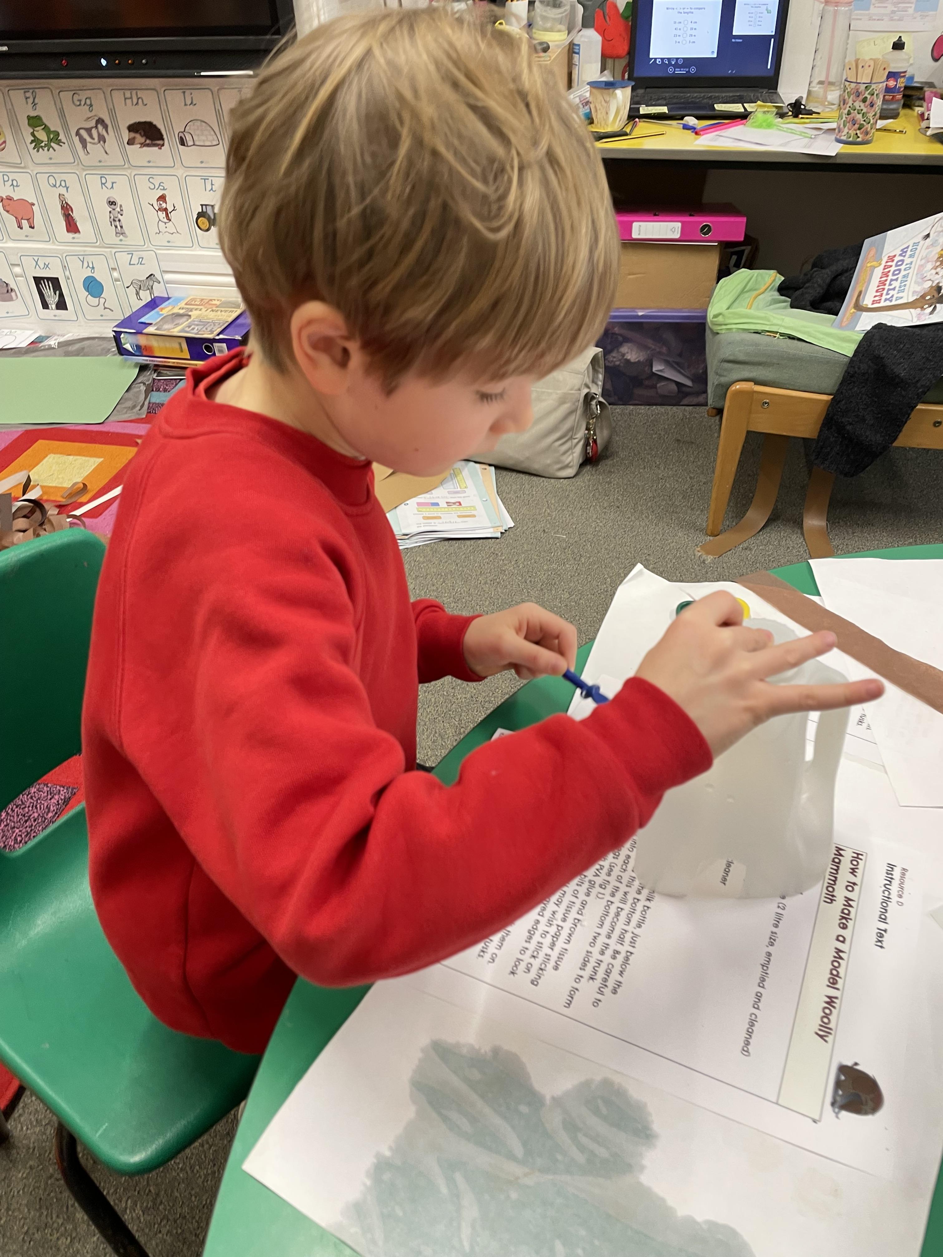 For Literacy work on 'How to Wash a Woolly Mammoth' we tried following instructions to make our own woolly mammoth. Since we ended up with very varied results, despite following the same instructions, e worked out how the instructions could have been improved to be clearer.
