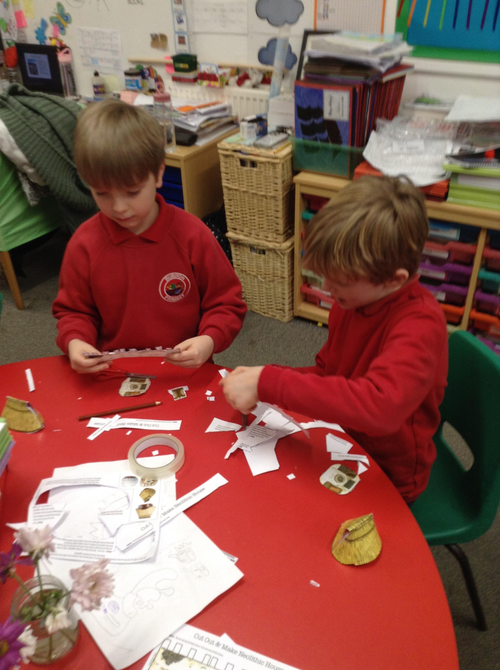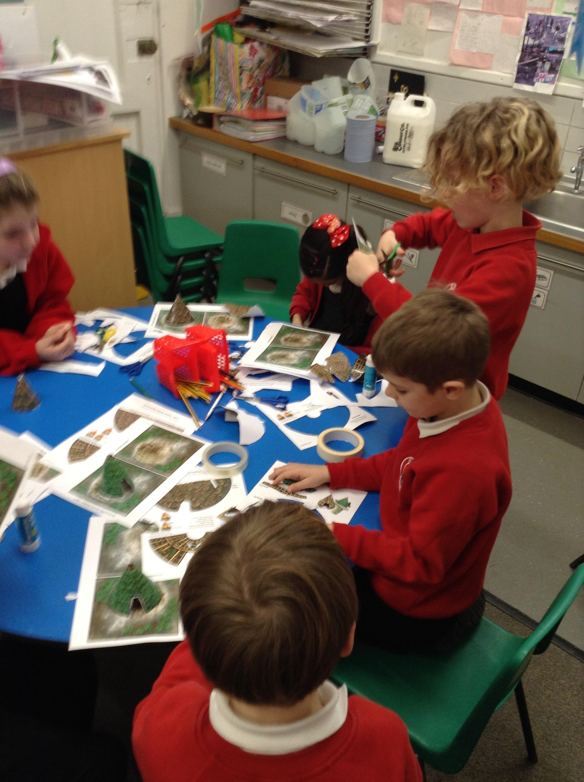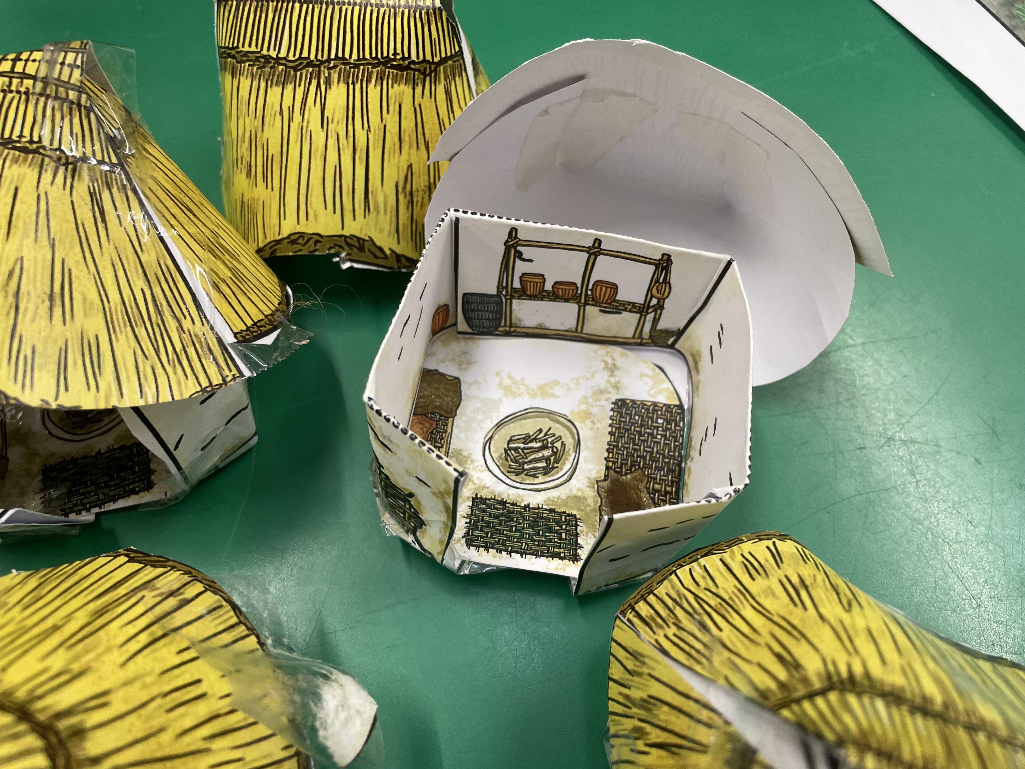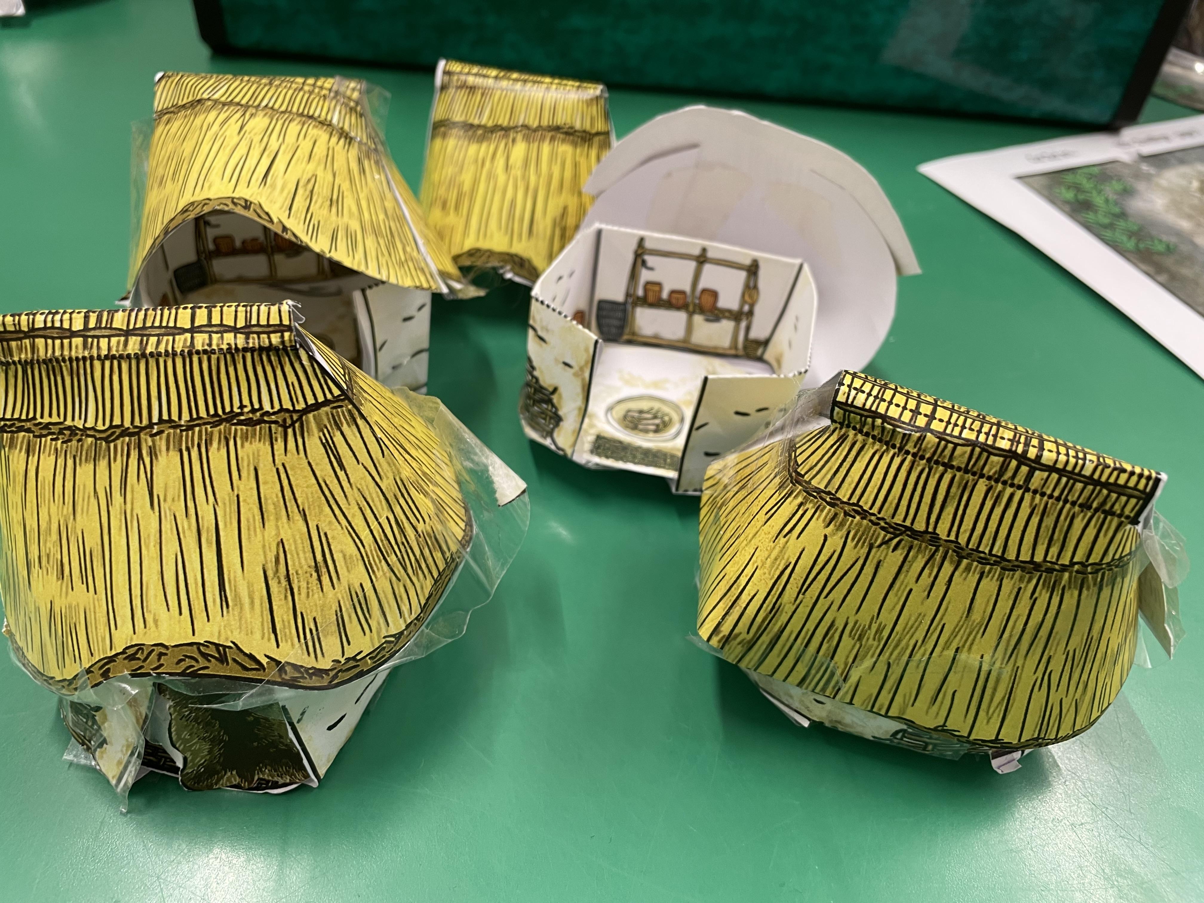 We learnt how houses changed in Britain during prehistory and had a go at building some in DT using connecting techniques.