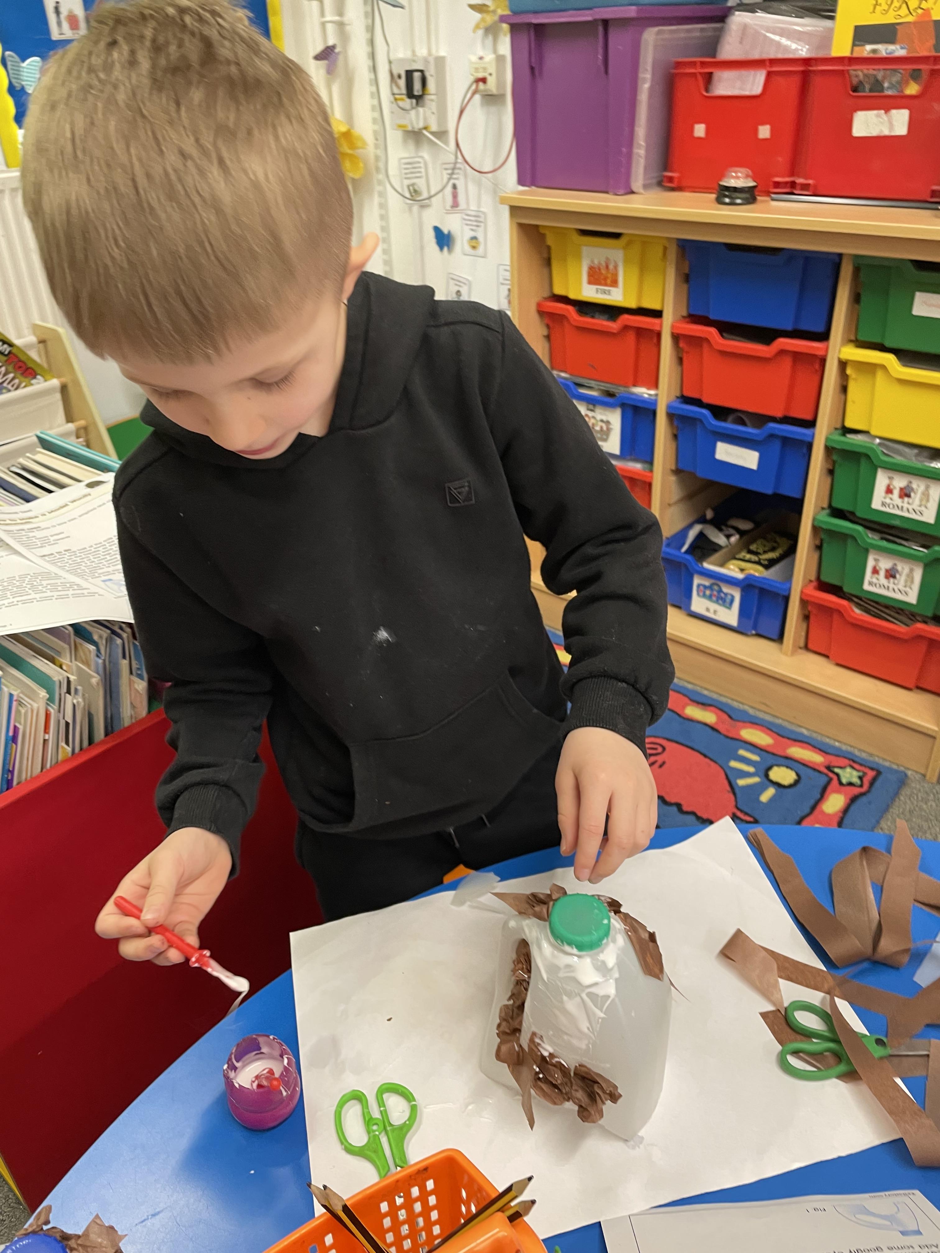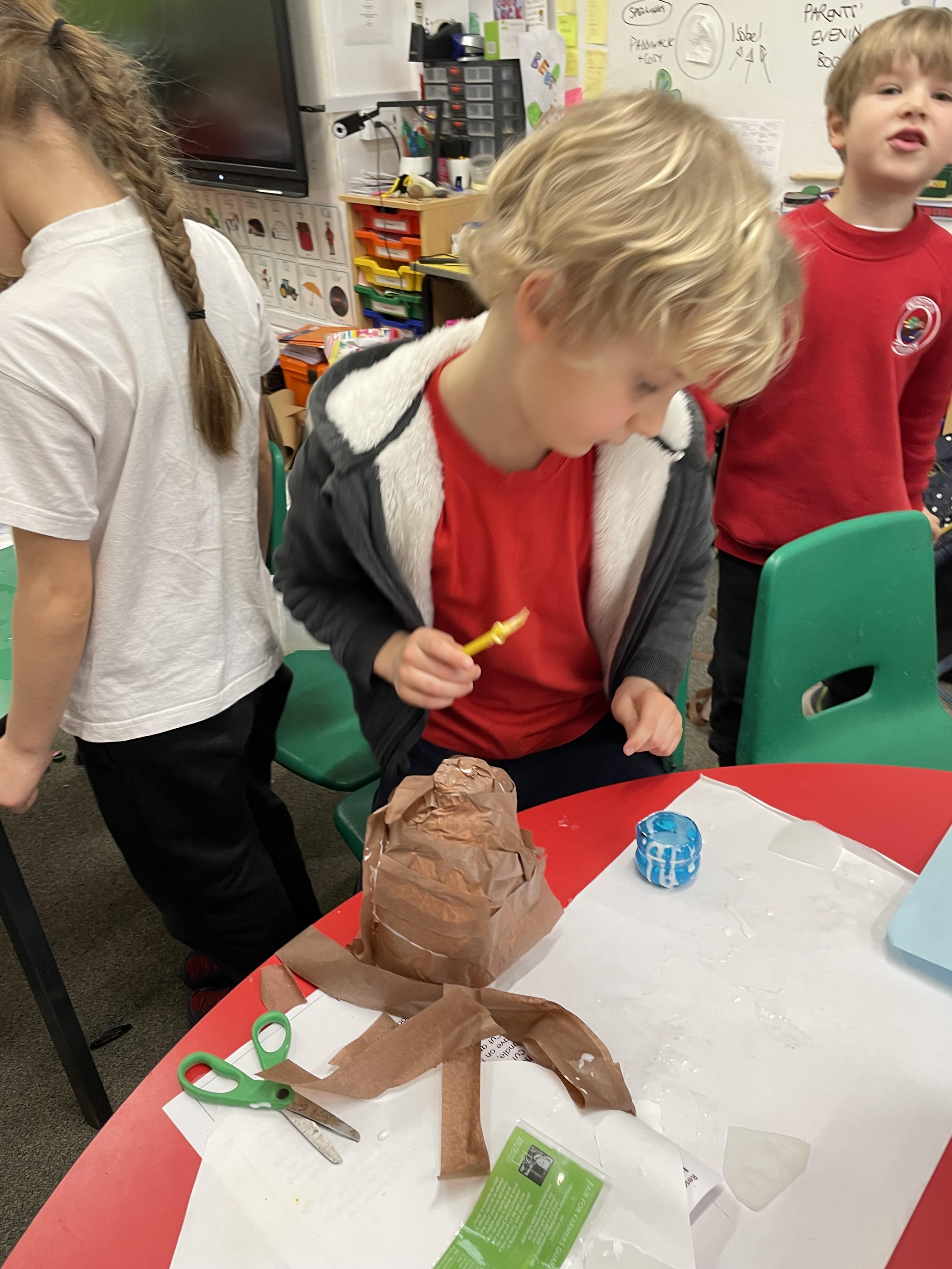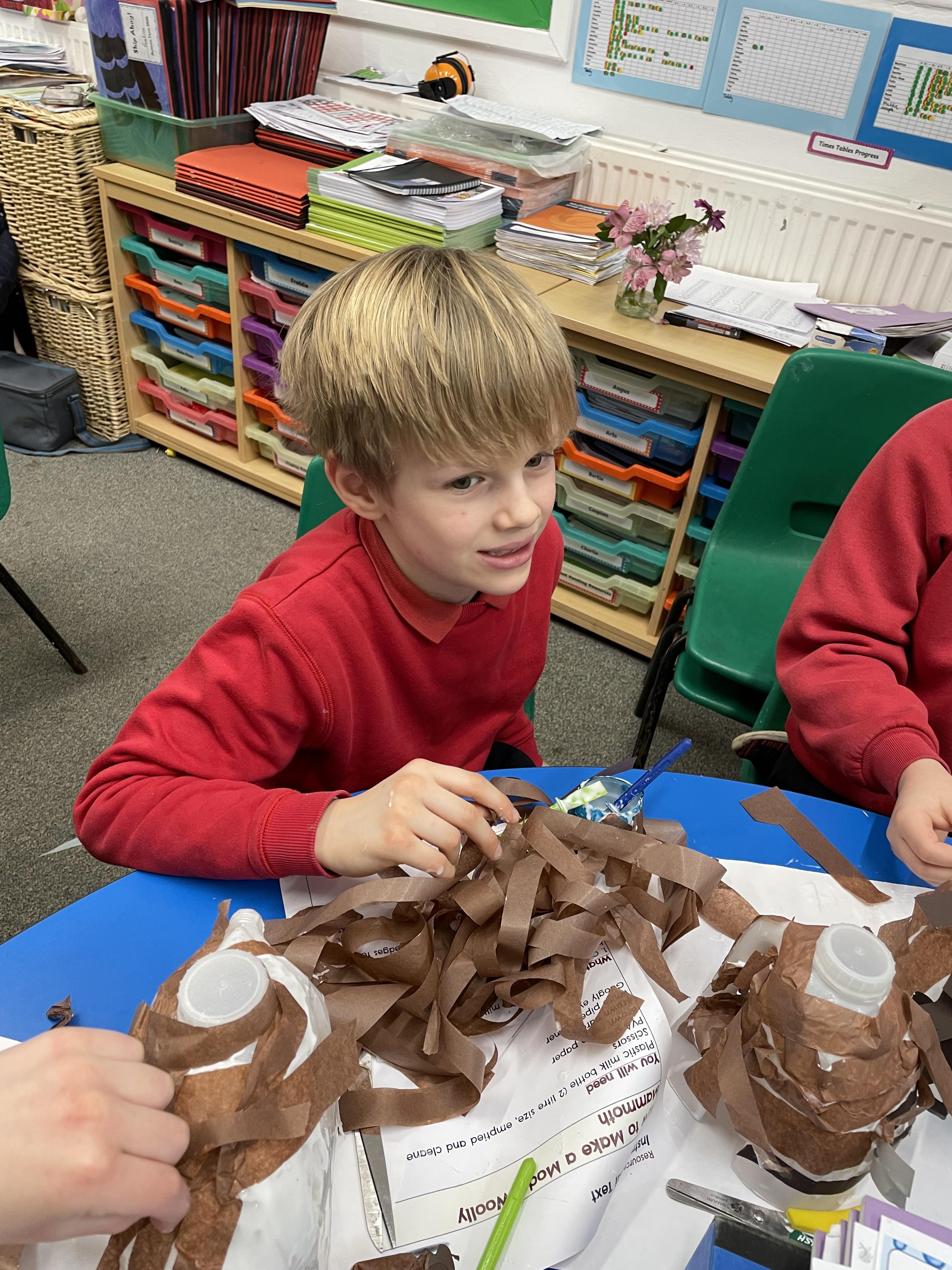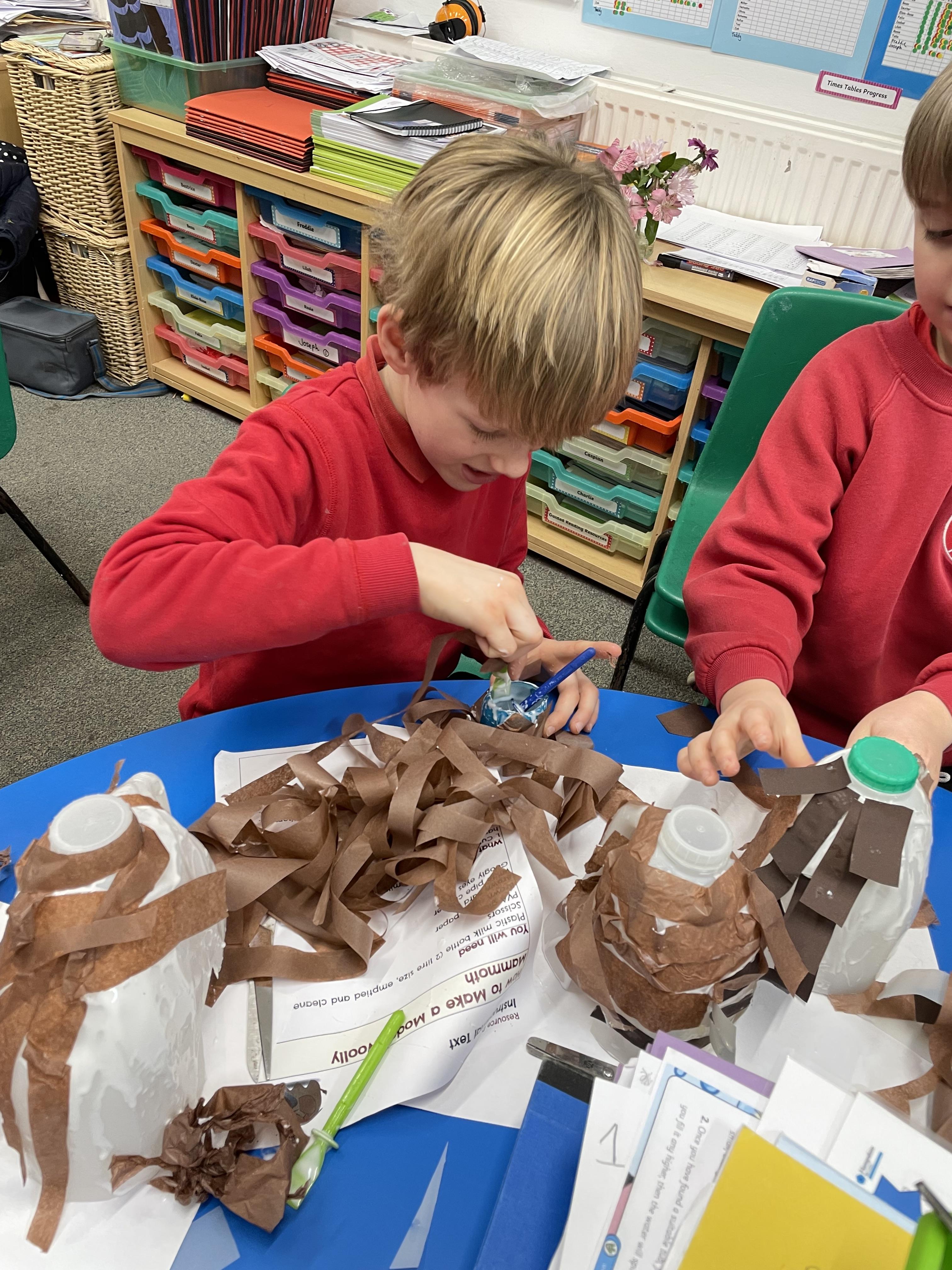 We learnt how houses changed in Britain during prehistory and had a go at building some in DT using connecting techniques.